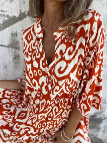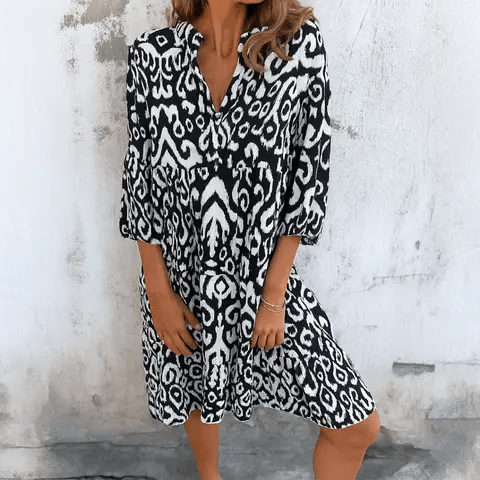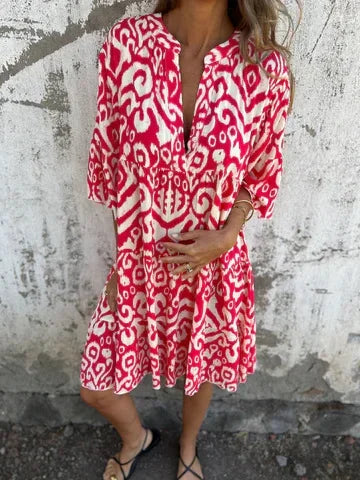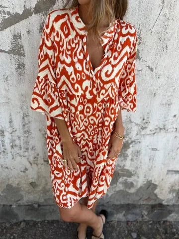 Linda™ | Dröm dig bort i boho-chic charm med denna luftiga midiklänning